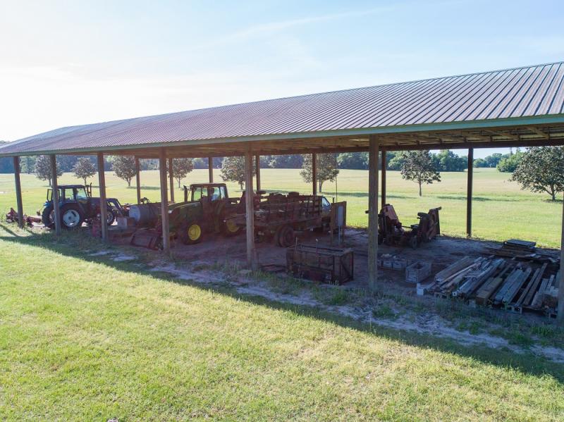 Campfield Ranch offers an opportunity that does not come to the market very often. A unique property that has been well maintained over the lifetime of the current owners. Starting with the improvements that include an older well-maintained home with a 7 bay 3,200 square foot metal building with concrete floor and 7 roll up doors, an 8 bay 3,640 square foot metal building with concrete floor and 16 roll up doors and a 2,184 square foot pole barn. Property has a mix of cut over planted pine, premerchantable planted pines and Rocky Creek provides picturesque views as it meanders through the hardwoods. Old canopy roads also offer many unique views. |